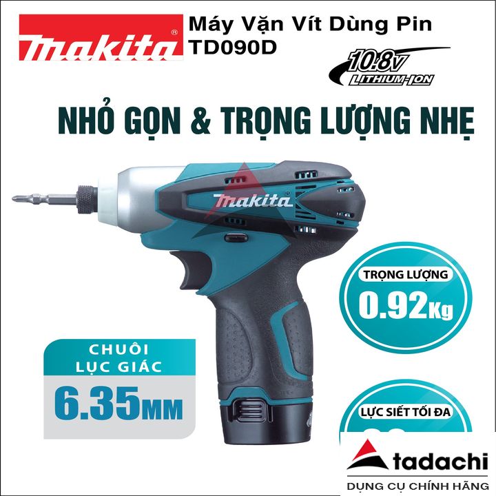 Máy vặn vít 90N.m dùng pin 10.8V Makita TD090DZ (không pin sạc) | Tadachi