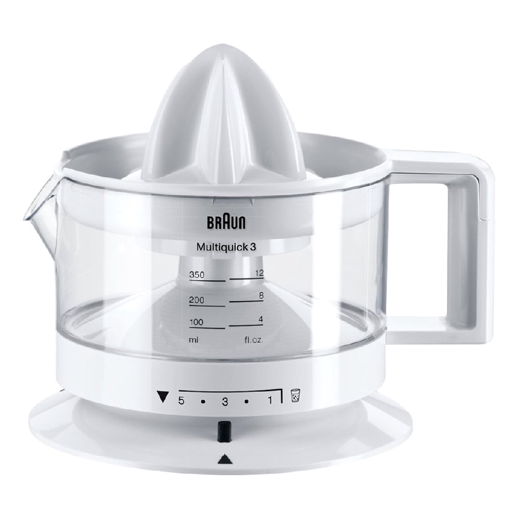 - Với máy vắt cam Braun CJ 3000, bạn chỉ cần xoay bình đựng theo mức điều chỉnh lượng tép cam, máy vắt sẽ dễ dàng cho bạn một kết quả như mong muốn với những ly cam tươi ngon, bảo đảm an toàn.