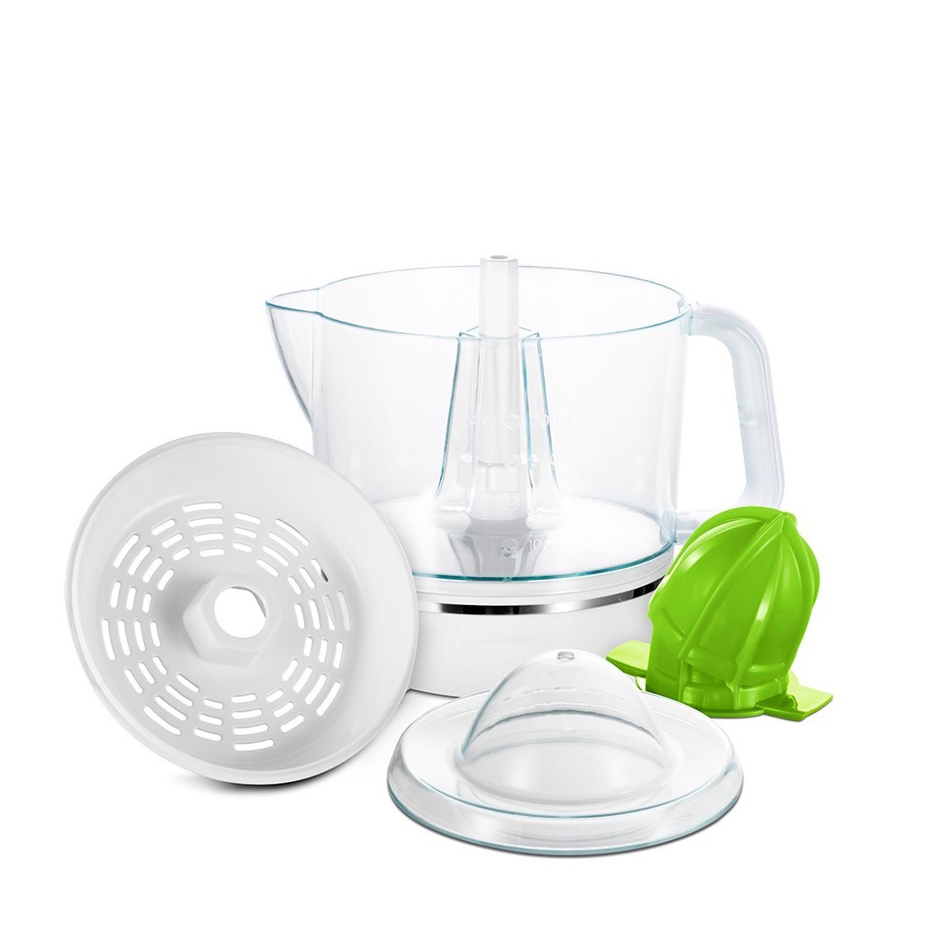 Bình đựng trong suốt giúp bạn quan sát được lượng ép bên trong. Nắp đậy bảo vệ bên ngoài và nắp đậy đầu vắt bên trong giúp bảo vệ kín đáo, ngăn ngừa bụi bẩn, vi khuẩn xâm nhập hiệu quả. Quai cầm dày chắc kết hợp cùng miệng rót trên bình đựng giúp bạn thực hiện các thao tác cầm nắm, rót nước ép dễ dàng.