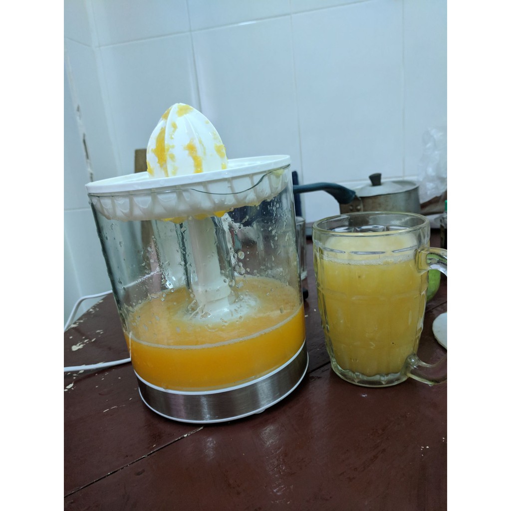 * Đặc biệt, sản phẩm trang bị bình đựng trong suốt giúp bạn quan sát được lượng ép bên trong. Nắp đậy bảo vệ bên ngoài và nắp đậy đầu vắt bên trong giúp bảo vệ kín đáo, ngăn ngừa bụi bẩn, vi khuẩn xâm nhập hiệu quả. Quai cầm dày chắc kết hợp cùng miệng rót trên bình đựng giúp bạn thực hiện các thao tác cầm nắm, rót nước ép dễ dàng.