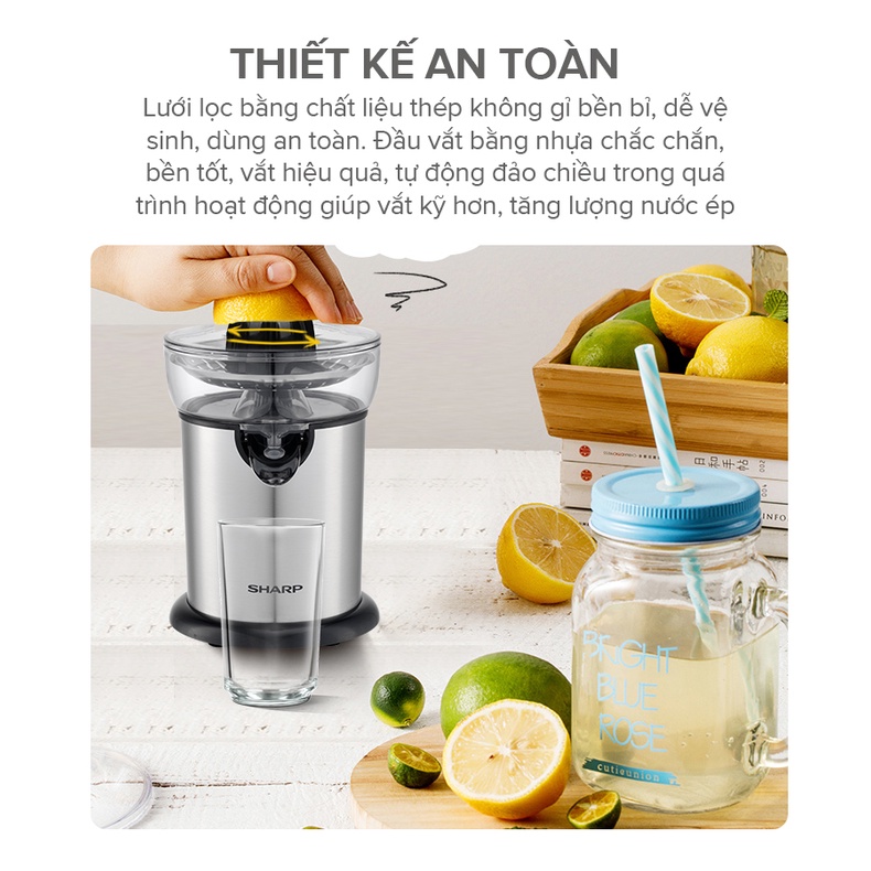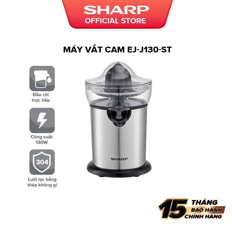 Giới thiệu Máy Vắt Cam Sharp EJ-J130-ST Đầu Rót Trực Tiếp - Hàng Chính Hãng Bảo Hành 12 Tháng