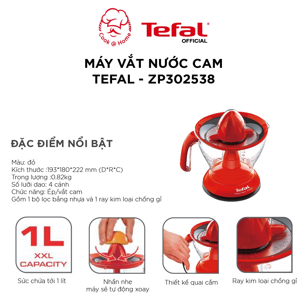 Giới thiệu [Mã ELHA22 giảm 5% đơn 300K] Máy vắt nước cam Tefal ZP302538 - 1L, 25W - hàng chính hãng