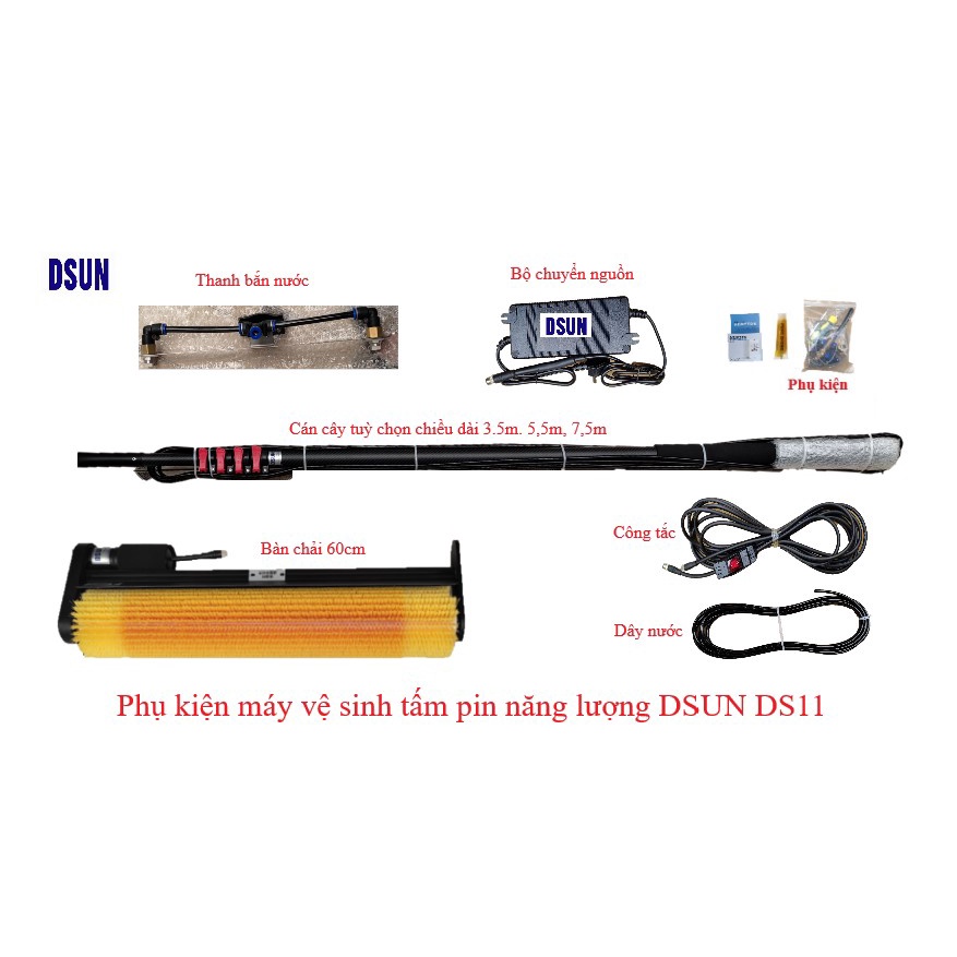 Giới thiệu Máy vệ sinh Pin năng lượng mặt trời DSUN DS11, Chổi vệ sinh pin mặt trời | Chổi lau pin mặt trời phiên bản dùng Điện