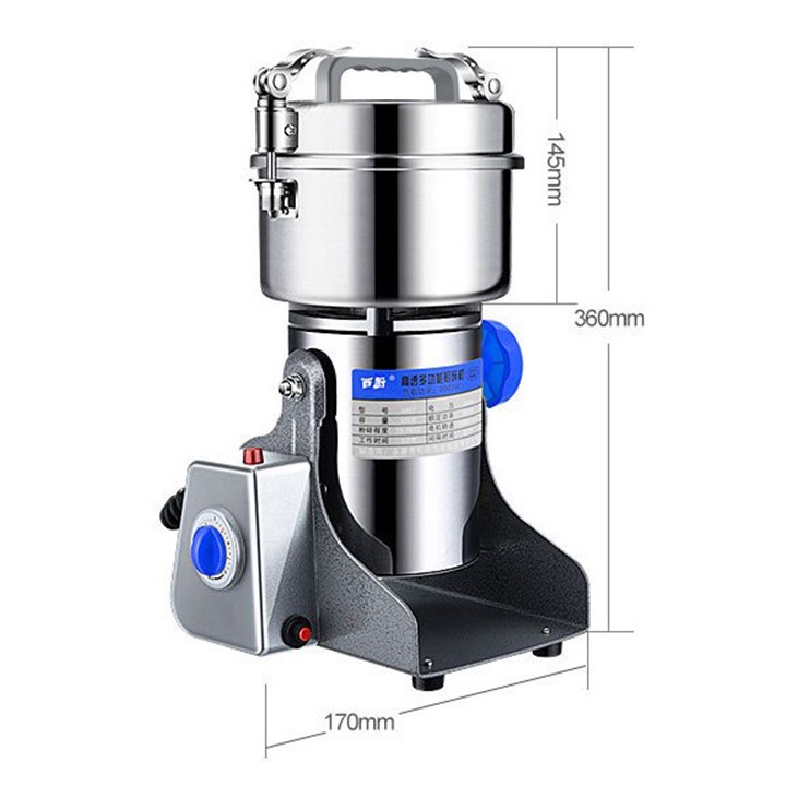 MÔ TẢ SẢN PHẨMMáy chuyên xay thuốc bắc, dược liệu, thuốc nam, các loại thuốc trong đông y, quế, hồi, đinh hương, ... Công suất 3200W, tốc độ quay motor 25000 vòng/ phút Năng suất tối đa 1000gram mỗi mẻ tùy nguyên liệu Mỗi mẻ xay trong 30s-60s, cực nhanh, bột cực mịn, xay hẹn giờ tiện lợi Xay lắc nghiêng, đổ bột ra dễ dàng Đường kính nồi 15cm, sâu 7cm, nắp gài inox tiện lợi chắc chắc Chất liệu inox 304 100%