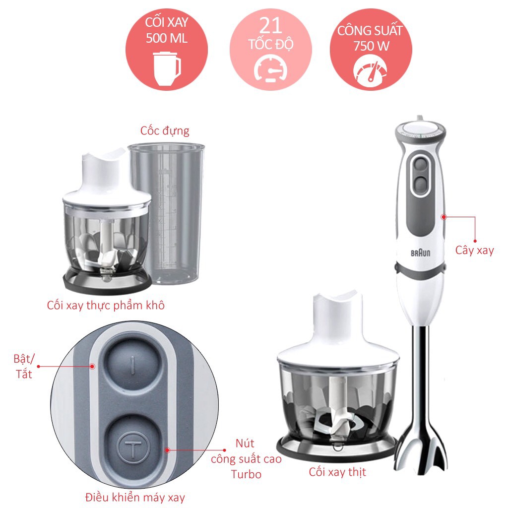 HÔNG SỐ KĨ THUẬT VÀ TÍNH NĂNGMáy xay cầm tay Braun MQ5235 sauce vario 1000w 500ml (màu trắng xám)