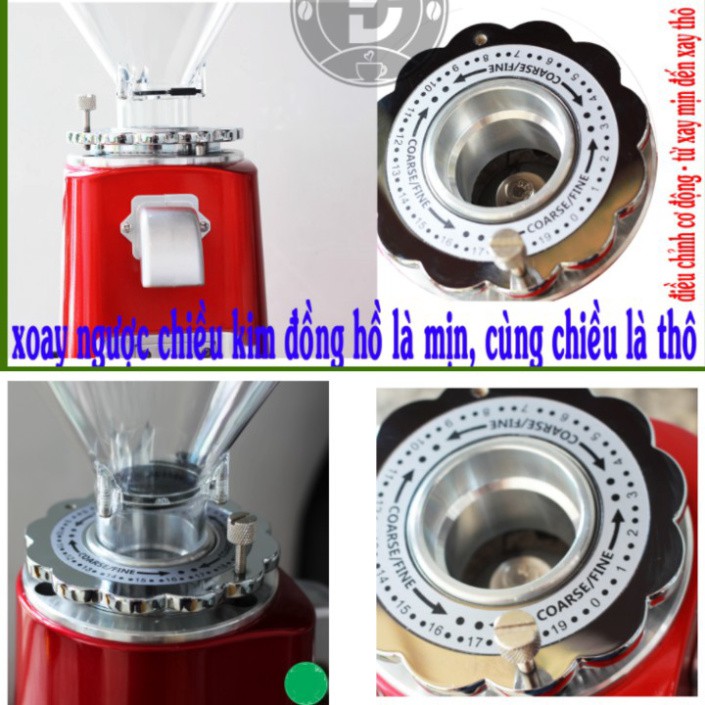 - Công nghệ đĩa xay chuyên nghiệp giúp bột cà phê sau khi xay đạt độ mịn phù hợp và hạt cà phê sau xay không bị nóng làm hương thơm cà phê không bị mất đi trong quá trình xay. Phễu đựng trong suốt có thể trưng bày hạt cà phê , giúp cửa hàng bạn quảng cáo được việc xay cà phê nguyên chất.