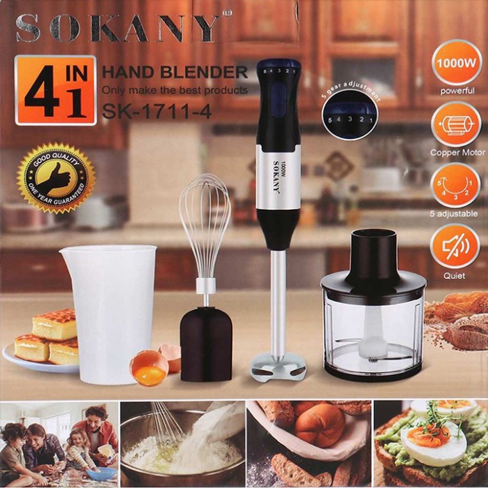 Máy xay cầm tay đa năng: xay thịt, Xay sinh tố, đánh trứng 1000W Chính hãng SOKANY