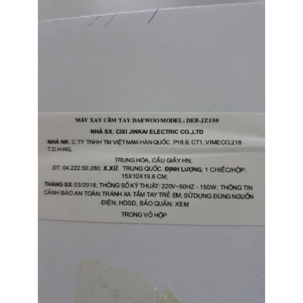 Thiết Bị Điện Gia Dụng > Đồ gia dụng nhà bếp > Máy ép, Xay sinh tố & Máy làm sữa đậu nành || Máy xay cầm tay Daewoo DEB-JZ150Còn hàng