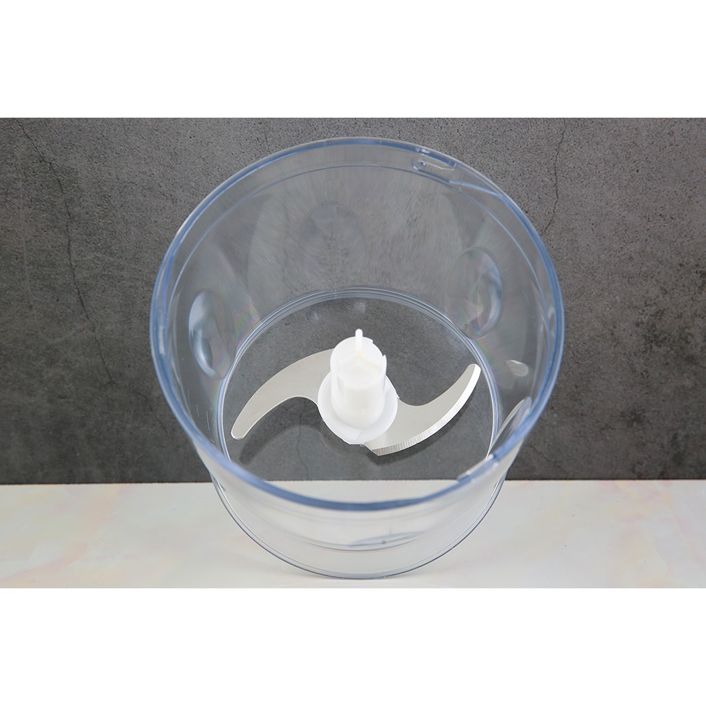 Cối xay thịt dung tích đến 500ml chứa được lượng thực phẩm nhiều hơn. Chất liệu bằng nhựa tốt, thiết kế khép kín xay thịt, cá, hải sản rất thuận tiện, không sợ văng thực phẩm ra ngoài