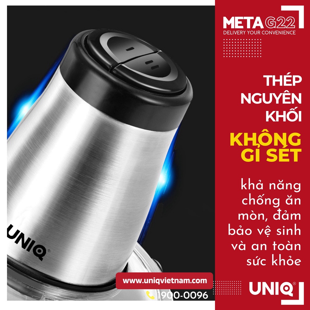 Giới thiệu Máy Xay, Cối Xay Thịt Cá, Rau Củ Đa Năng UNIQ Meta G22 2L Lưỡi Dao Kép Không Rỉ, Cối Thủy Tinh Cao Cấp