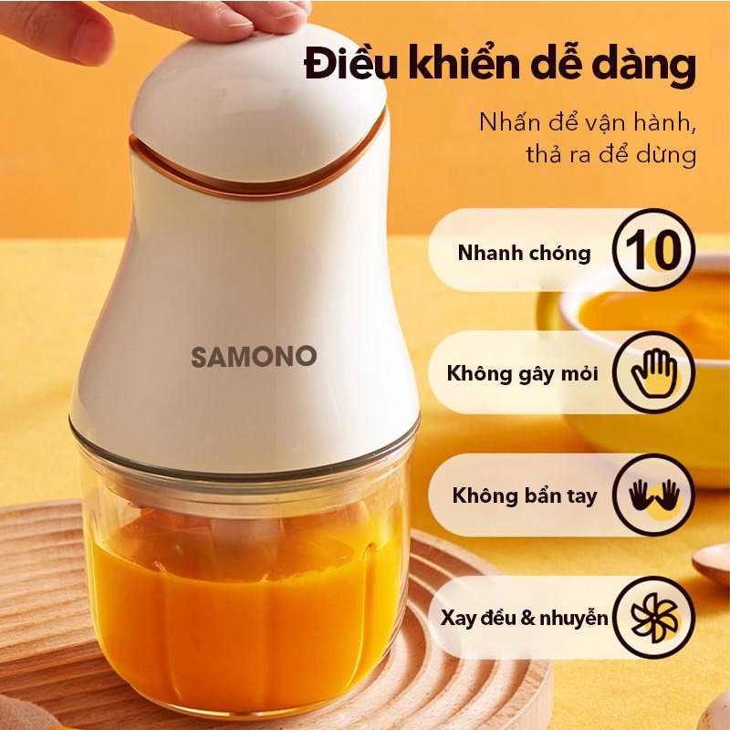 Máy xay SAMONO có công suất 200W, dễ dàng xay nhuyễn thực phẩm trong 10 giây. Trục xoay được thiết kế chuyên dụng, lưỡi dao thép không gỉ, cối thủy tinh cao cấp chịu nhiệt, thiết kế tinh giản, tháo ráp tiện lợi, điều khiển nhấn nhả, dễ vận hành vô cùng.