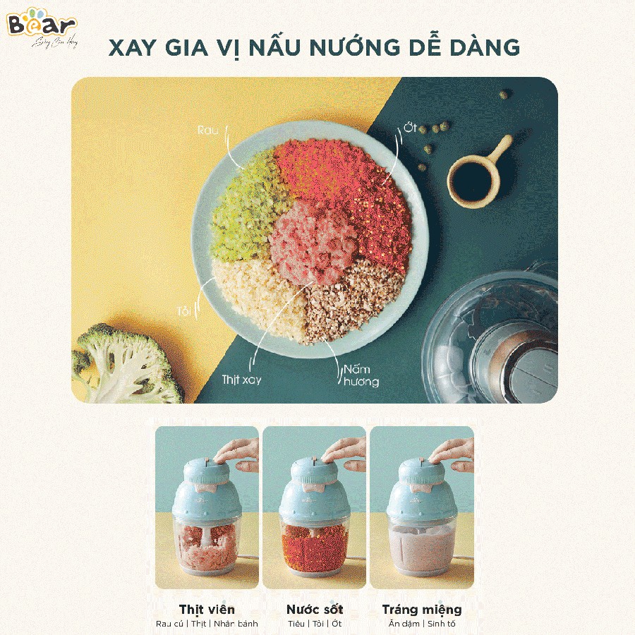 Giới thiệu Máy Xay Đồ Ăn Dặm Mini, Máy Xay Thịt Bear GR-B06V1 0.6L, Cối Thủy Tinh An Toàn Vệ Sinh, Bảo Hành 12 Tháng