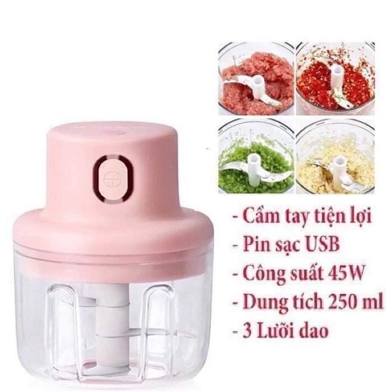 Máy Xay Mini Cầm Tay Đa Năng Sạc Pin Cao Cấp, May Xay Tỏi Ớt, Hành, Rau Củ Quả Dung Tích 250ml - Gia Dụng Tân Thanh