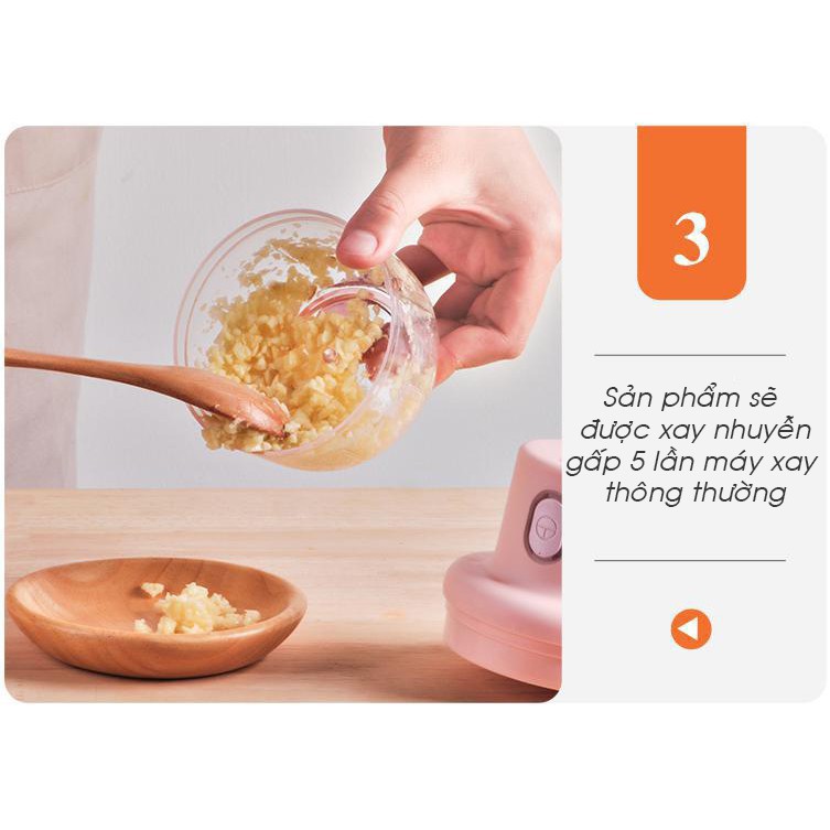 Máy Xay Mini Sạc Điện Có Cổng Sạc Usb, Nhỏ Gọn Tiện Ích Dễ Sử Dụng Xay Hành Tỏi Rau Củ Quả Thể Tích 250ML
