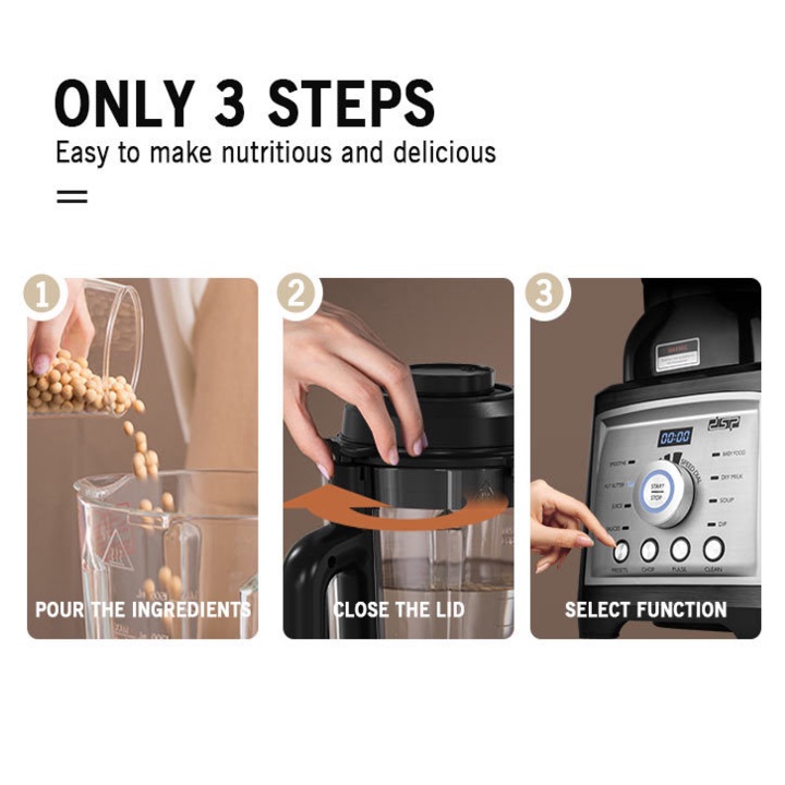 Thiết Bị Điện Gia Dụng > Đồ gia dụng nhà bếp > Máy ép, Xay sinh tố & Máy làm sữa đậu nành || Máy xay nấu và làm sữa hạt DSP KJ2055 - Công suất khuấy định mức: 1400WCòn hàng