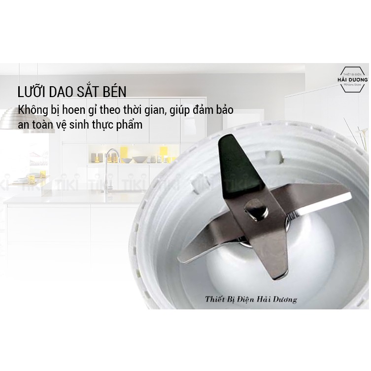 - Lưỡi dao bằng thép không gỉ cao cấp có thể nghiền nhỏ mọi loại thực một cách dễ dàng. Ngoài ra, lưỡi dao không bị hoen gỉ theo thời gian, giúp đảm bảo an toàn vệ sinh thực phẩm.