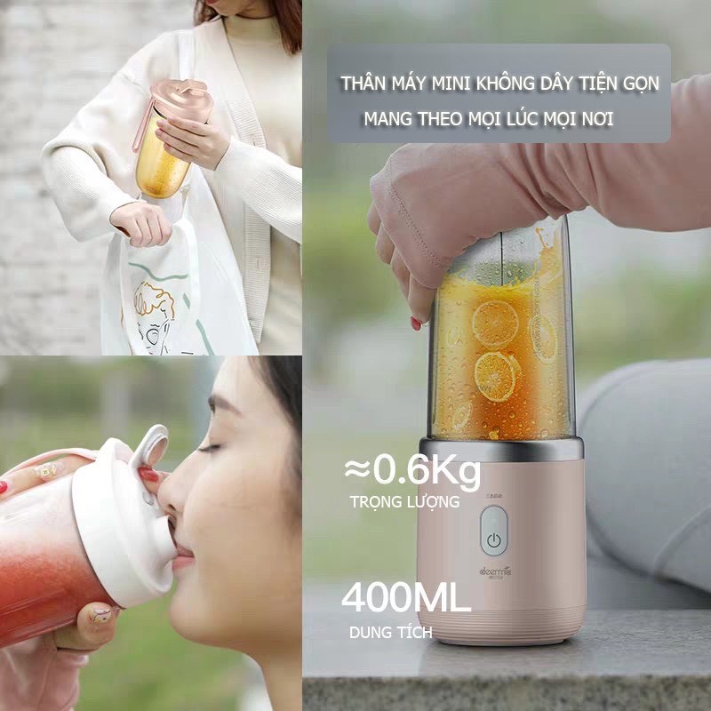 Máy xay sinh tố cầm tay mini Deerma NU05 Hồng 2 lưỡi xay công suất mạnh, Máy xay ép hoa quả VT268
