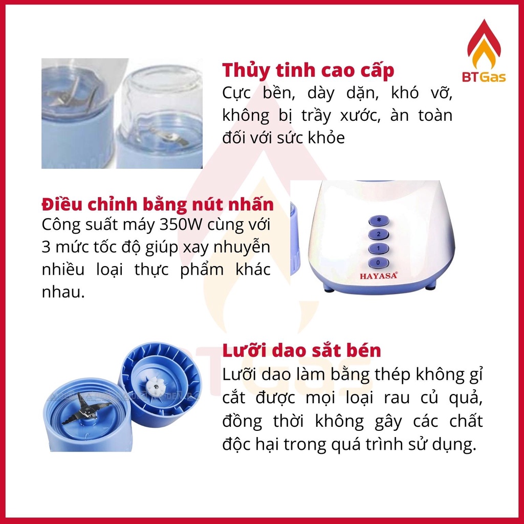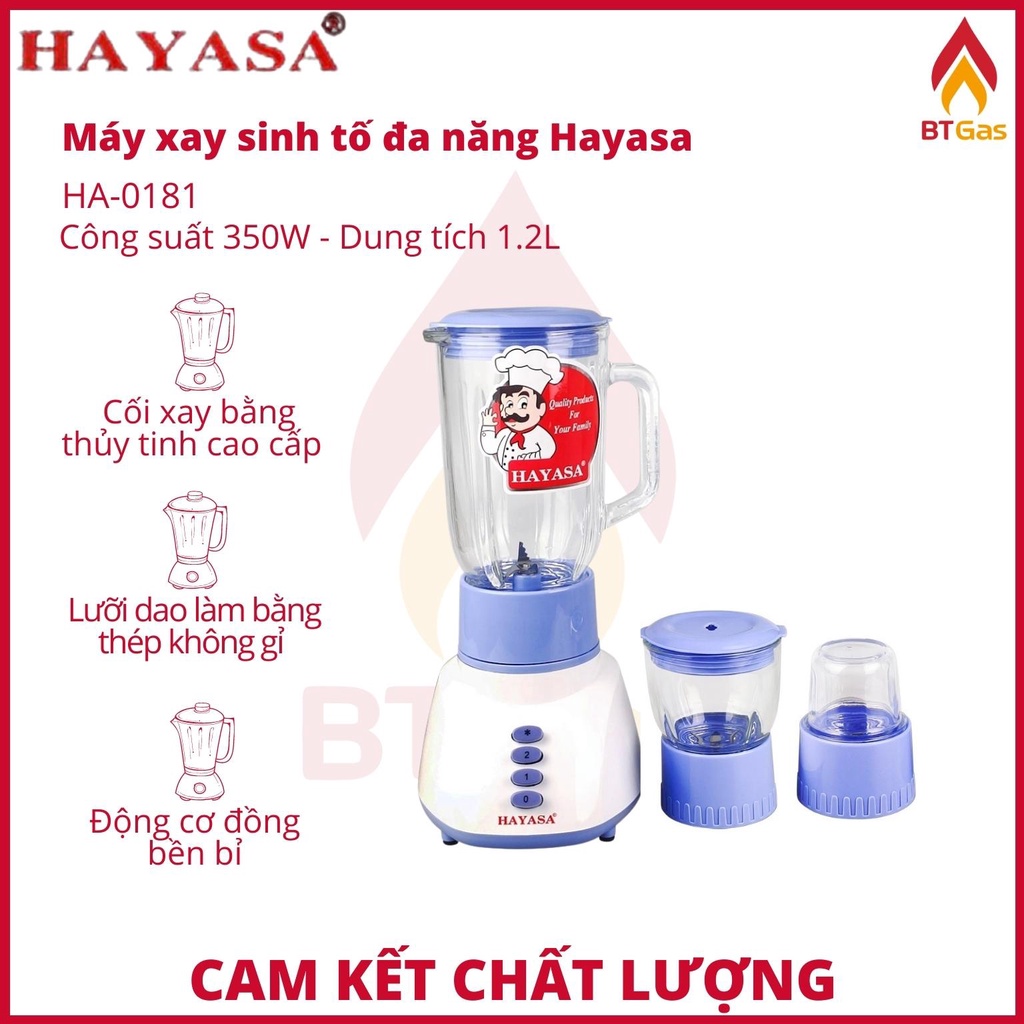 Máy xay sinh tố cối thủy tinh, máy xay đa năng dao thép không gỉ công suất 350W Hayasa HA-0181✔️ Máy xay sinh tố Hayasa HA-0181 có động cơ 100% lõi đồng giúp máy rất bền Hayasa HA-0181 có 3 cối xay: cối xay sinh tố có dung tích 1.25 lít, cối xay thịt và cối xay đồ khô.