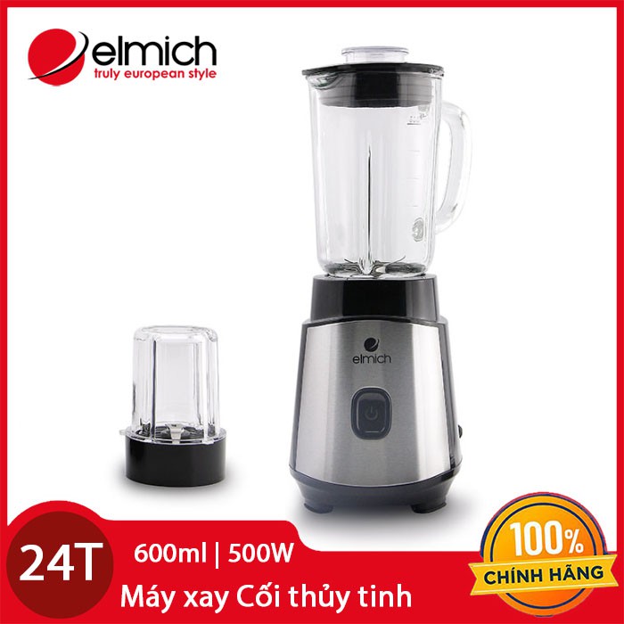 Máy xay sinh tố cối thuỷ tinh Elmich BLE-1843 công suất 500W chính hãng, bảo hành 24 tháng
