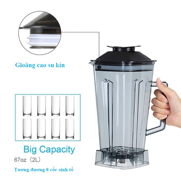 Với thiết kế công suất của động cơ lên tới 4500W, thể tích cối xay 2 lít, thiết kế với dao 6 lưỡi nên chiếc máy này có thể xay được nhiều nguyên liệu một cách nhanh chóng, hiệu quả, giúp bạn tiết kiệm thời gian hơn. Đặc biệt là xay các nguyên liệu cứng như đá viên mà không làm ảnh hưởng tới chất lượng chiếc máy này.