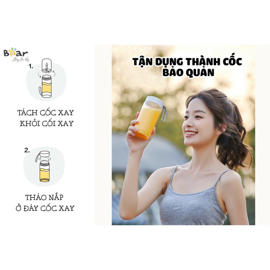 Máy xay sinh tố đa năng Bear LLJ-D04L1 dung tích 350ml tích hợp pin sạch điện lưỡi dao innox 304 sắc bén - Hàng Quốc Tế