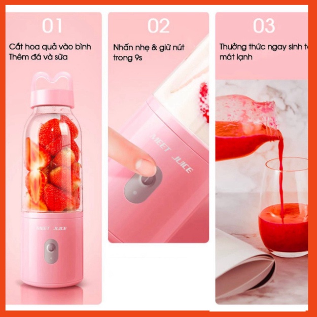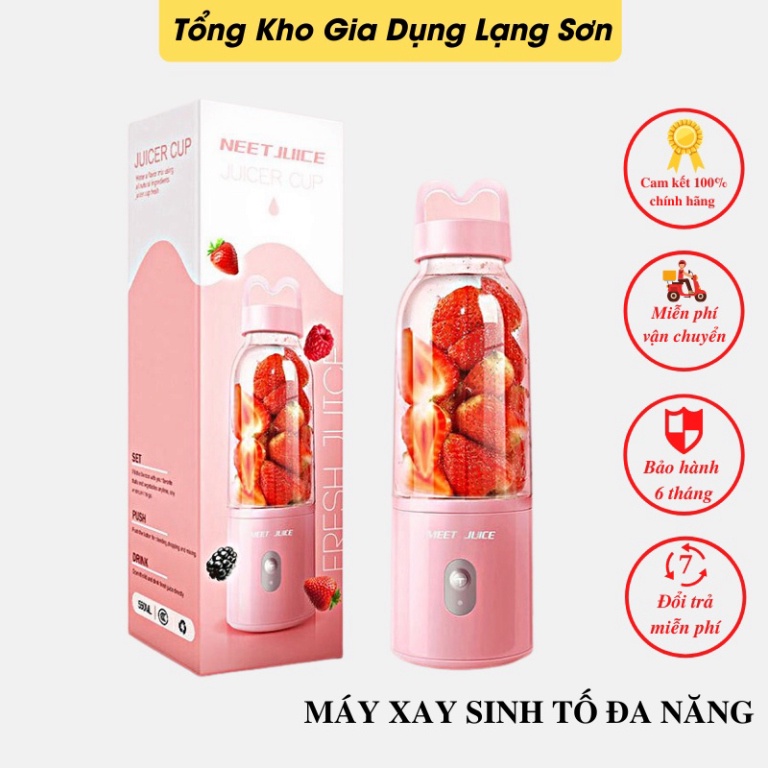 THÔNG TIN SẢN PHẨM:- Tên sản phẩm: Máy xay sinh tố đa năng cầm tay Meet Juice - Xay hoa quả mini cực nhanh 9s, an toàn dễ dàng sử dụng tiện lợi BH 12 tháng
