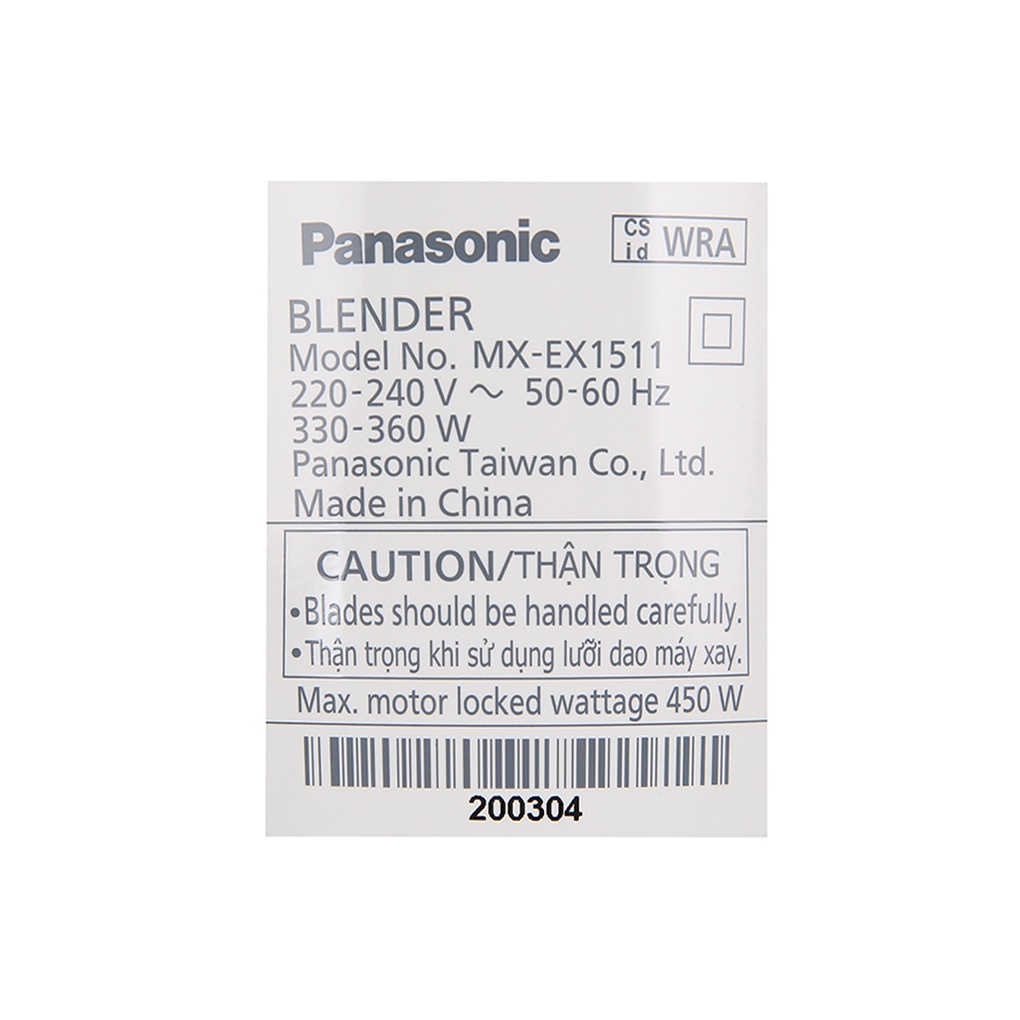 Giới thiệu Máy xay sinh tố Panasonic MX-EX1511WRA 1.5 lít 450W xay hạt, cháo, sinh tố, rau củ - Chính hãng BH 12 tháng