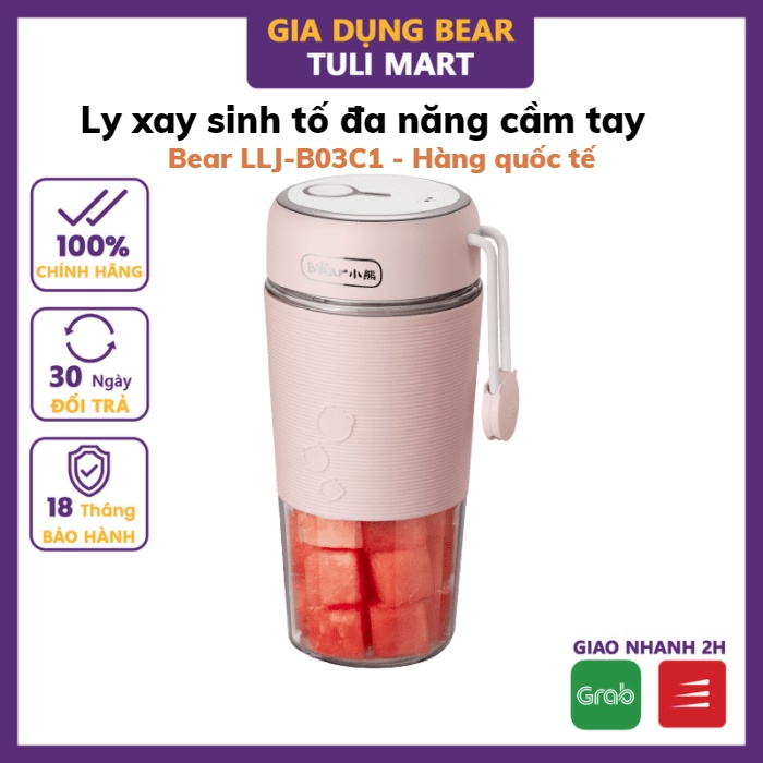Giới thiệu Máy Xay Sinh Tố Tích Điện Cầm Tay Mini Bear, Máy Xay Hoa Quả Đa Năng Bear LLJ-B03C1, Pin Tích Điện 700ml, Bảo Hành 18 th