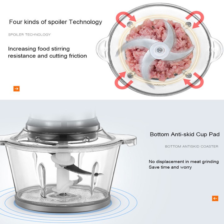 - Chất liệu thép không rỉ có độ bền cao và không độc hại với sức khỏe người dùng. Lưỡi dao sắc bén giúp xay nhuyễn mịn các loại thịt, cối xay thủy tinh dung tích 2L, dễ dàng tháo lắp và lau chùi sau khi sử dụng, đồng thời giúp bạn có thể quan sát thực phẩm bên trong.