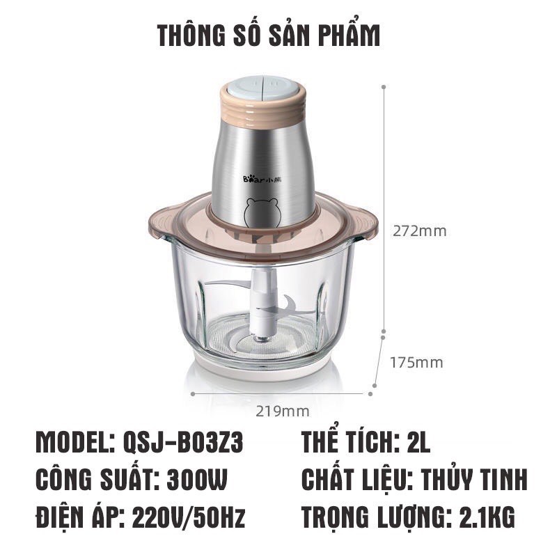 Máy xay thịt Bear QSJ-C03M1, máy xay thực phẩm đa năng, công suất 300W - Bảo hành chính hãng 12 tháng✅THÔNG SỐ: