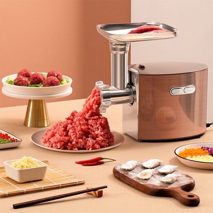- Máy xay thịt sử dụng điện dân dụng 220V – 50Hz nên rất tiện lợi khi bạn đem đến bất kì đâu để sử dụng