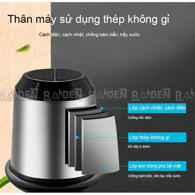 Thiết Bị Điện Gia Dụng > Đồ gia dụng nhà bếp > Máy chế biến thực phẩm & Xay thịt || Máy Xay Thịt Cá Raiden RD-202 Inox 304 Công Suất 350W Dung Tích 1.8L Bộ Dao 4 lưỡi Thép Không Gỉ S30V - Hàng Chính HãngCòn hàng