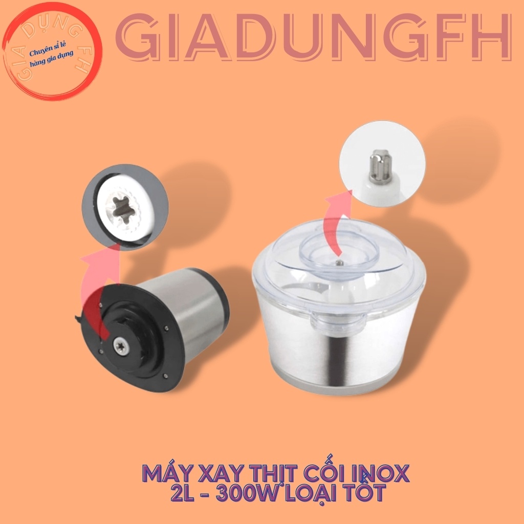 Máy xay thịt cối inox dung tích 2L , máy xay đa năng 4 lưỡi có thể dùng xay hành tỏi, xay tiêu hoặc các loại thực phẩm khác Ưu điểm của máy xay.thiết kế nhỏ gọn, chắc chắn, tiện dụng giúp chị em nội trợ chế biến thực phẩm siêu nhanh, hoạt động với công suất 200W, dung tích cối 2 lít giúp xay nhuyễn được nhiều thực phẩm 1 cách nhanh chóng. Phần cối xay dung tích 2 lít bằng inox bền đẹp, an toàn với sức khỏe giúp người dùng dễ dàng vệ sinh sau khi sử dụng. Động cơ phía trên được bảo vệ bằng lớp kim loại cách nhiệt, cách điện đảm bảo an toàn cho người dùng. Lưỡi dao với 4 lưới rất sắc bén giúp xay được nhiều thực phẩm như cá, thịt, rau củ thái nhỏ Công tắc ở phía trên đỉnh máy với 2 tốc độ quay giúp thuận tiện sử dụng khi máy đang hoạt động.