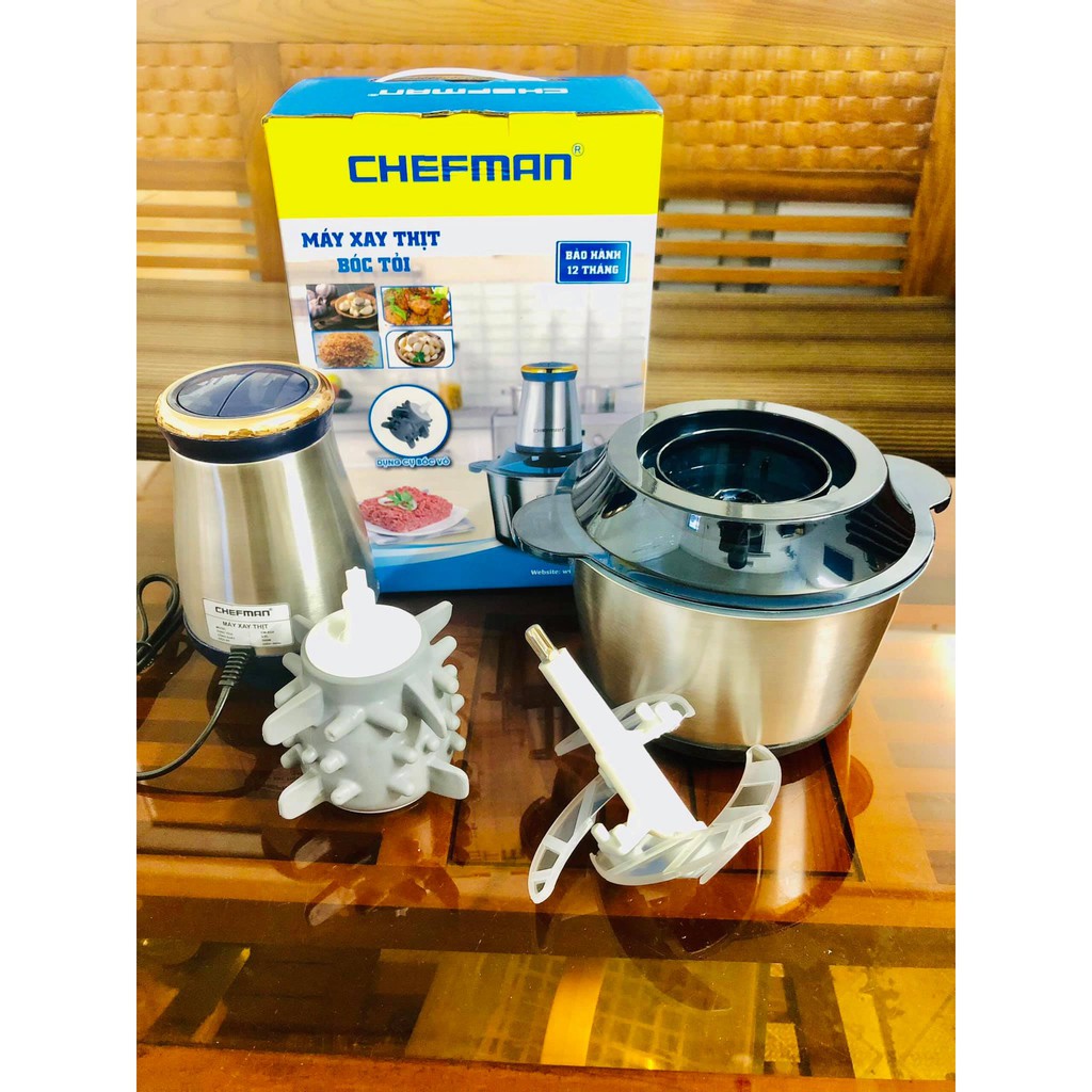 Máy Xay Thịt Cối Inox Kiêm Máy Bóc Tỏi 𝐂𝐡𝐞𝐟𝐦𝐚𝐧 300W CM-822i Chính Hãng
