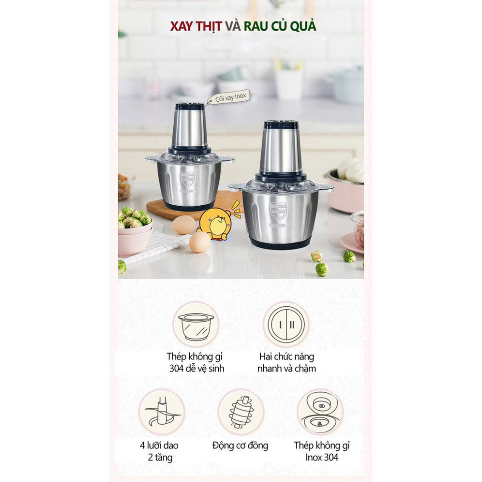 Máy Xay Thịt, Cối xay, Máy xay tỏi ớt đa năng cối inox 304 4 Lưỡi Đa Công suất 250W - BẢO HÀNH 6 THÁNG🎁THÔNG SỐ: