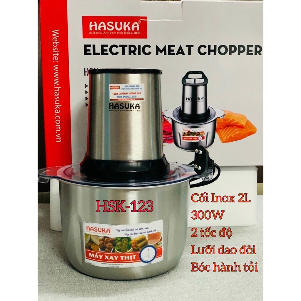 Máy xay thịt Hasuka HSK-123, Xuất xứ Nhật Bản, Bảo hành chính hãng 12 tháng, Cối Inox Siêu bền, Dung tích 2L; Lưỡi inox