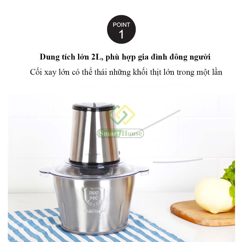 Máy Xay Thịt LocknLock 300W 2L Inox 304 Không Gỉ Cối Sâu - Smart House
