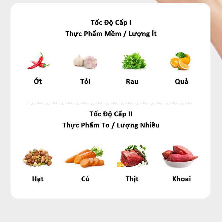 • Xay nhanh và tốt nhiều loại thực phẩm như: thịt, cua, cá, rau củ quả, xay các loại hạt, xay đá, xay sinh tố, xay cháo, đồ ăn dặm cho bé...