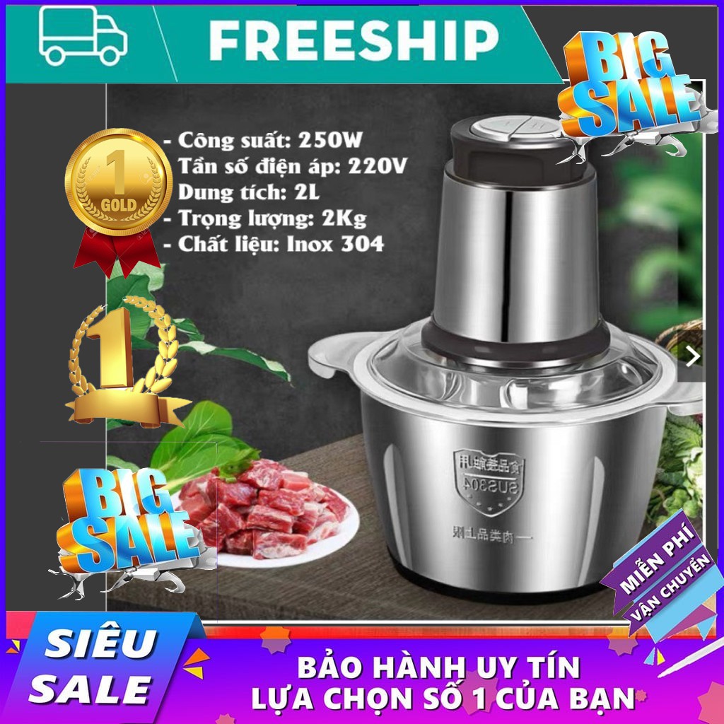 Máy Xay Thịt, Máy Say Thịt Cá Cối Inox 304 2L 4 Lưỡi Công Suất 250W Cao Cấp - Cối Xay thực phẩm rau củ quả đa năng