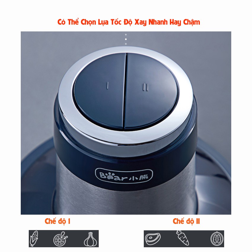 Máy Xay Thịt Mini Bear, Máy Xay Thực Phẩm, Tỏi Ớt Đa Năng, Công Suất Lớn QSJ-C03M1- Hàng Chính Hãng Bear, Bảo Hành 18 t