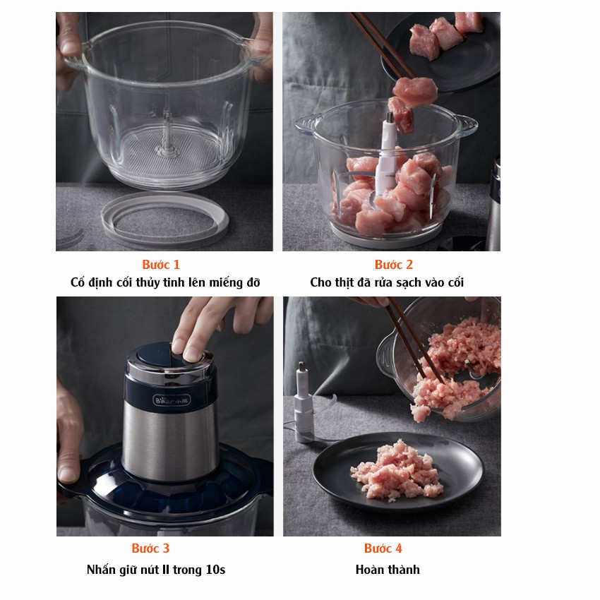 + Thiết kế lưỡi dao kép, xay nhuyễn nhừ nhanh các đồ như thịt cá, rau củ quả, ớt, tỏi, chỉ trong vòng tích tắc