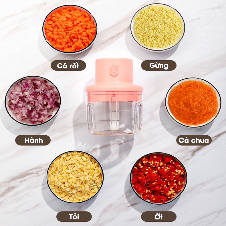 🥈 CÔNG DỤNG Máy Xay Thịt Mini Cầm Tay 250ml, Xay Tỏi Ớt, Sạc Điện Cổng USB