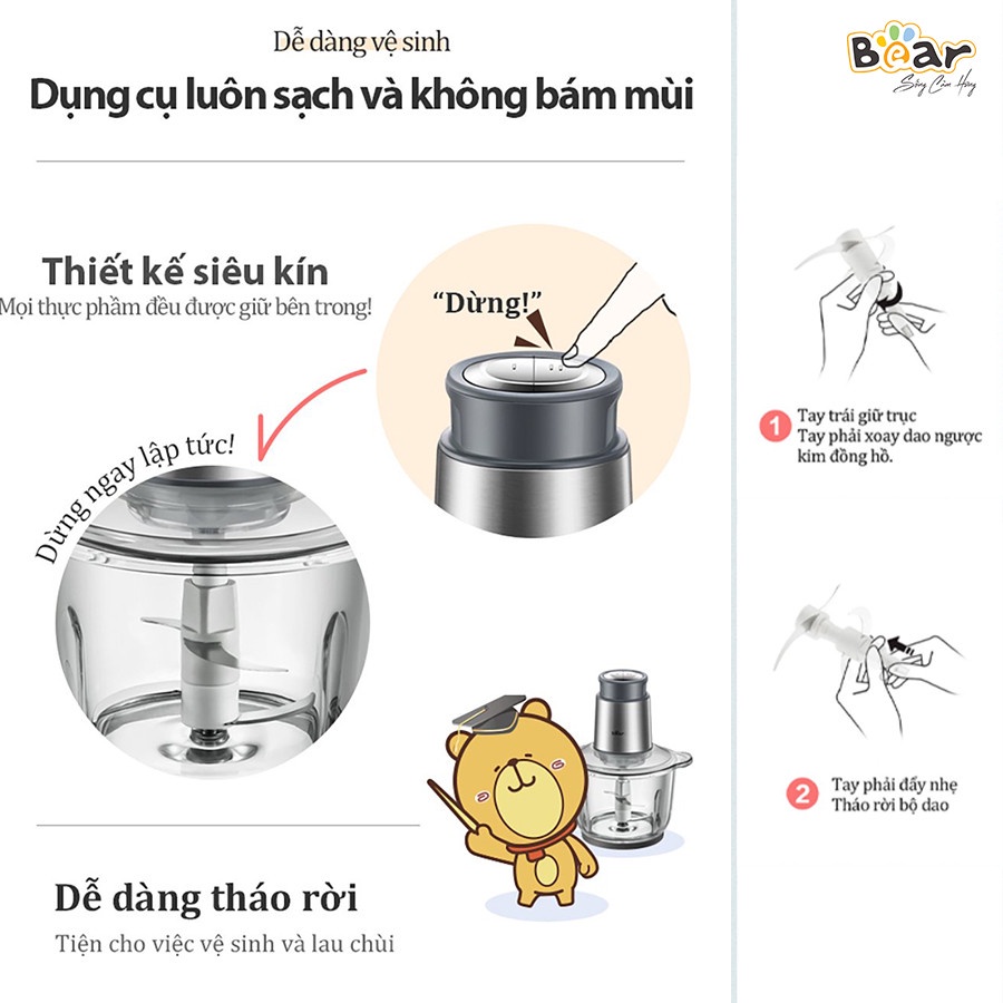 📣 MÁY XAY THỊT XAY THỰC PHẨM ĐA NĂNG BEAR - Dung tích 2L