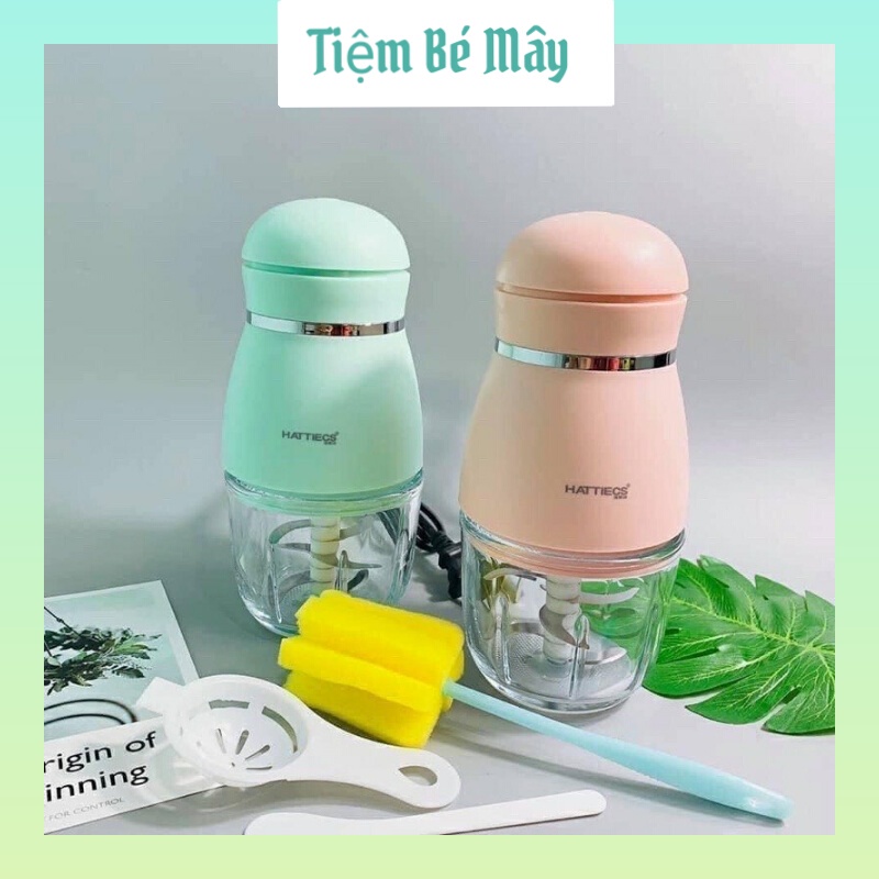 Máy xay thịt mini, máy xay ăn dặm Hattiecs 6 lưỡi 300ml