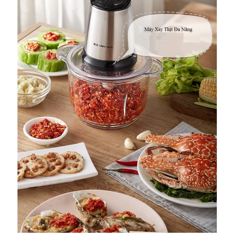 - Sản phẩm Máy xay thịt đa năng được thiết kế linh hoạt dễ sử dụng. Được thiết kế với 2 tốc độ cùng hệ lưỡi dao kép xoáy ngược đẩy thực phẩm xuống đáy bảo đảm không bị tràn ra ngoài. Phần thân trên động cơ được thiết kế bằng inox sang trọng với 3 lớp cách điện bên trong.