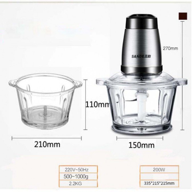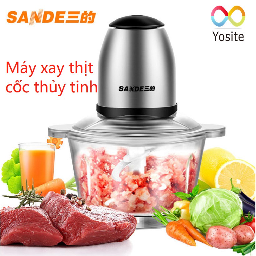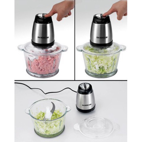 Máy xay thịt Sande cối thủy tinh 2 tầng lưỡi xay khỏe, nhuyễn đa năng- Đối với những gia đình có con nhỏ hay người lớn tuổi thì việc xay nhỏ hay xay nhuyễn thực phẩm là điều cần thiết để không ảnh hưởng đến sức khỏe của bé. Nhưng những thao tác truyền thống như băm chặt trên thớt vừa lâu lại không an toàn vệ sinh. Hiểu được tâm lý của các bậc cha mẹ, shop đã đưa ra một dụng cụ nhà bếp vô cùng lý tưởng cho việc xay thịt cá.