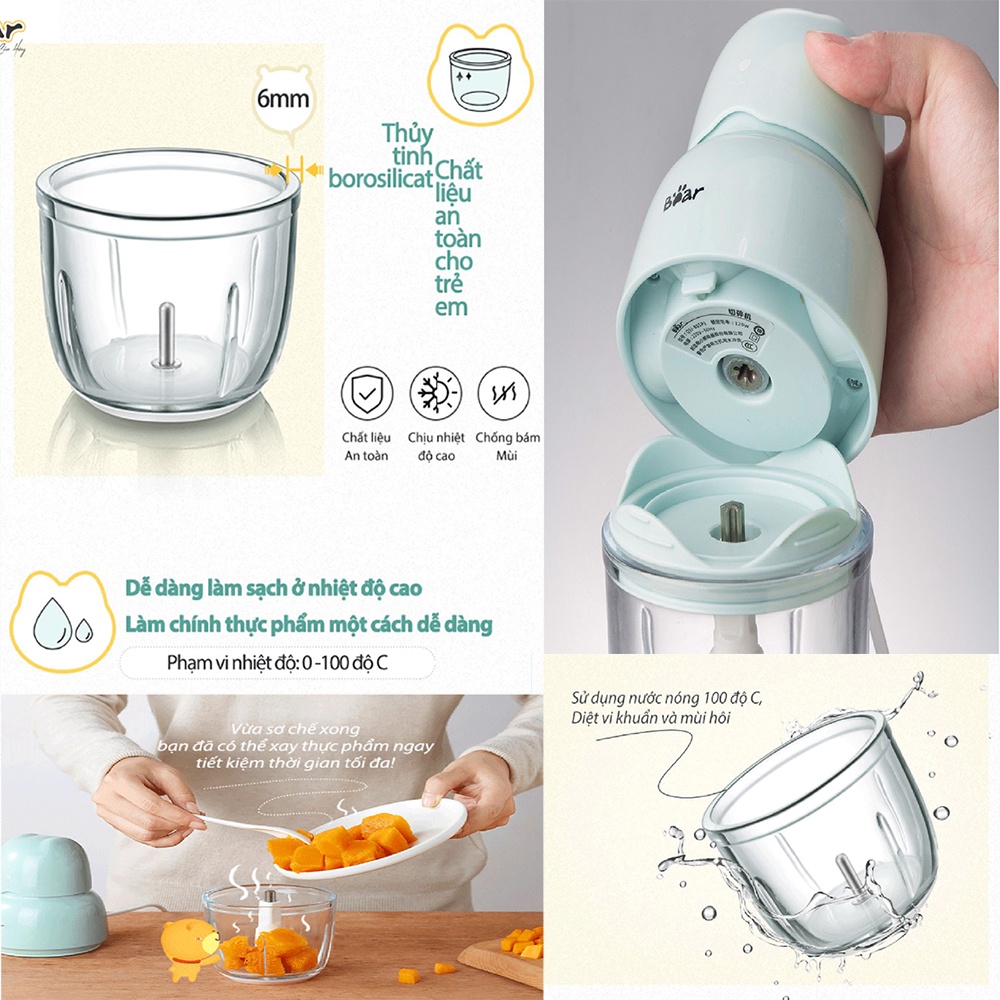Giới thiệu Máy Xay Thịt Thực Phẩm Ăn Dặm Bear Mini Càm Tay Nhỏ Gọn Đa Năng Dung Tích 0.3 Lít - HiMect