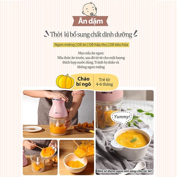 Hướng đến đối tượng sử dụng là nữ giới, Bear tạo hình và màu sắc của chiếc máy xay thực phẩm đa năng Bear QSJ-B02U2 rất xinh xắn và phù hợp.