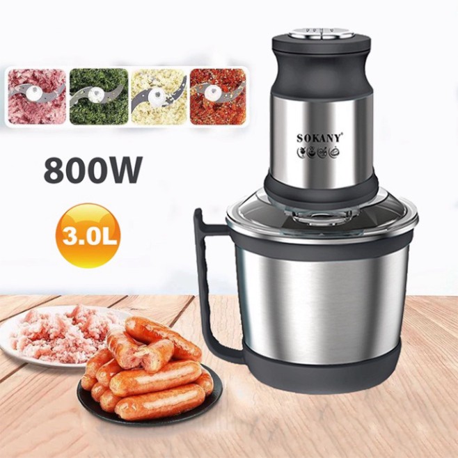Máy Xay Thịt, Tỏi Ớt Đa Năng SOKANY 3L Chất Liệu Inox Công suất lớn 800W