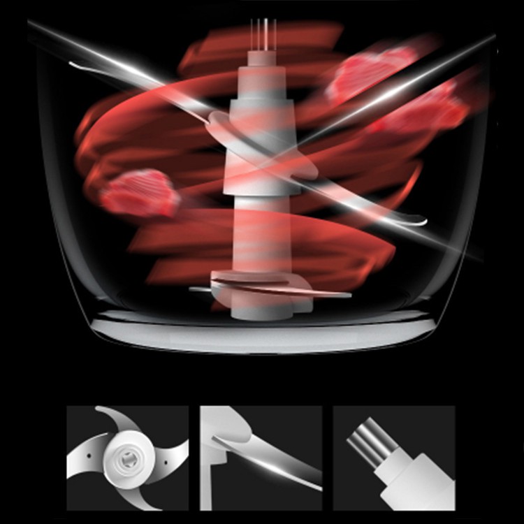 - MÁY XAY THỊT VÀ THỰC PHẨM CỐI INOX CAO CẤP 3L được tích hợp bộ lưỡi dao kép (4 lưỡi) thông minh và độc đáo kết hợp chất liệu thép không gỉ tạo nên lực cắt mạnh & độ sắc bén nhanh chóng xay thực phẩm nhuyễn chỉ trong thời gian ngắn.